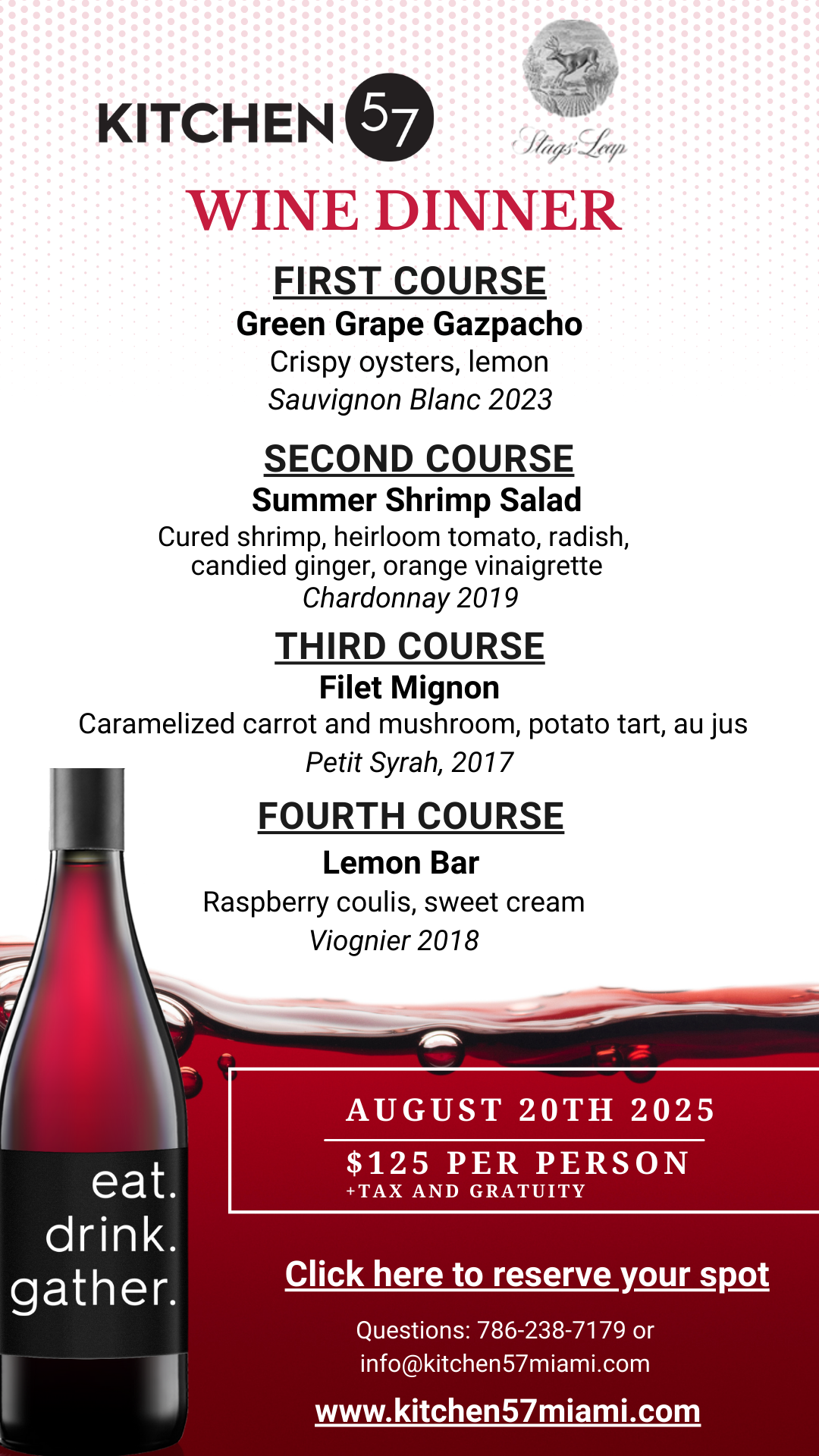 Stag's Leap Wine Dinner 8/20/2025 NOW 15% OFF THROUGH August 16th! Click here to reserve your wine dinner spot