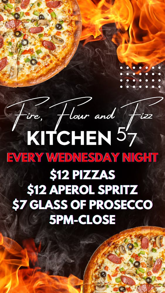 Wednesday: Double Loyalty Points and Fire, Flour & Fizz ($12 Pizzas, $12 Aperol Spritz, $7 Prosecco, 5pm-close)