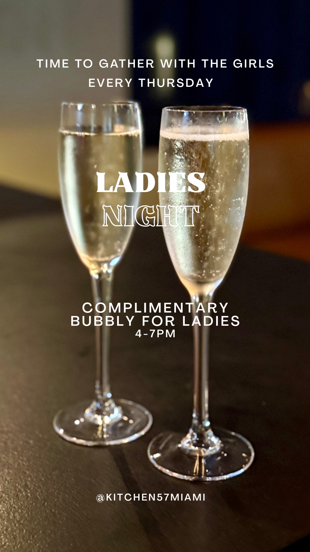 Thursday Ladies Night: Complimentary Bubbly for Ladies 4pm-7pm
